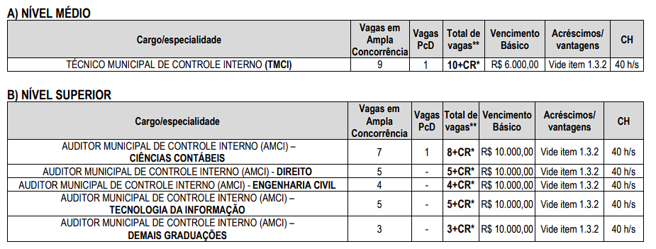 SaláriosR$ 10.000,00 (Auditor) e R$ 6.000,00 (Técnico)