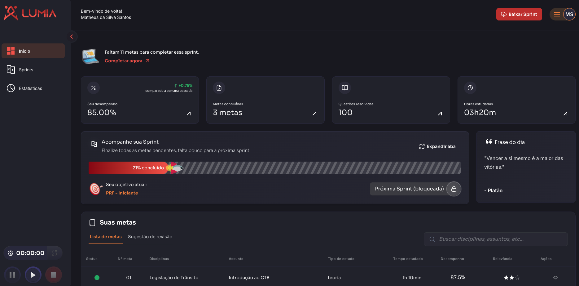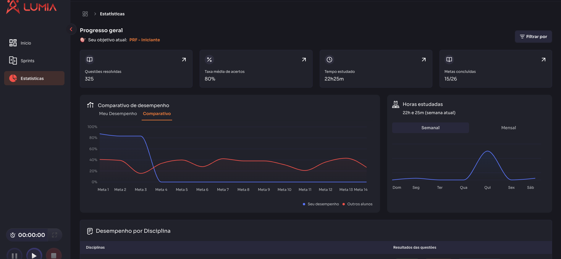 Metas de estudo personalizadas